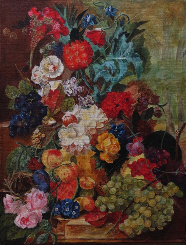 Bouquet de fleurs et de fruits